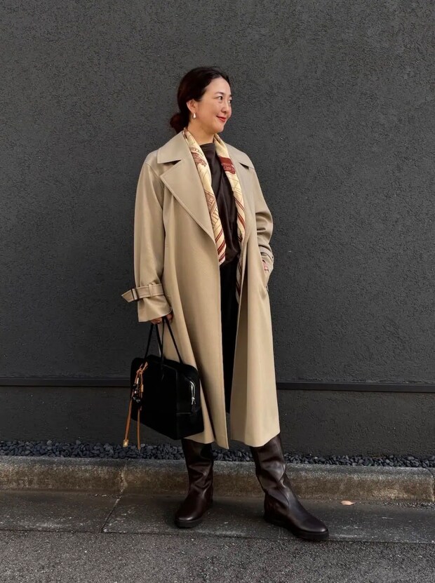 エステータのコート、ファビオ ルスコーニのブーツ、アローのストール、メゾンカナウのバッグ、その他は全て本人私物