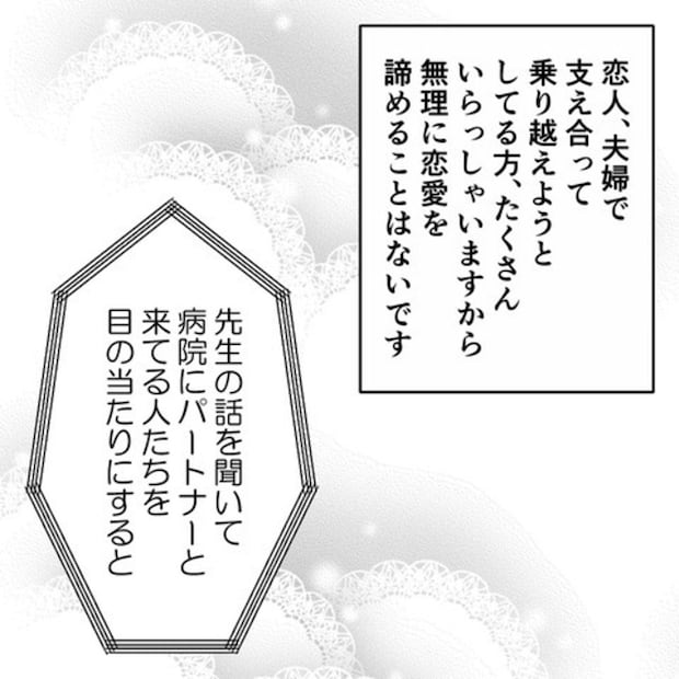 病院には、恋人、夫婦などパートナーと一緒に来院する人がたくさんいました。「恋愛を諦めることはない」と先生に言われたE原さんは「間違っていた」と思ったといいます。