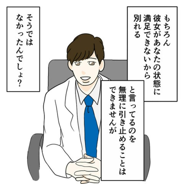 E原さんの担当の先生は、恋人と別れたカレにアドバイスをしてくれました。