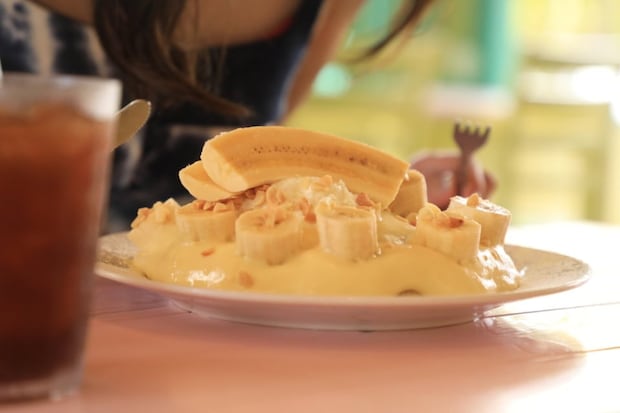 ボリューム満点のBanana&Mac Nut Pancakeは$19.75