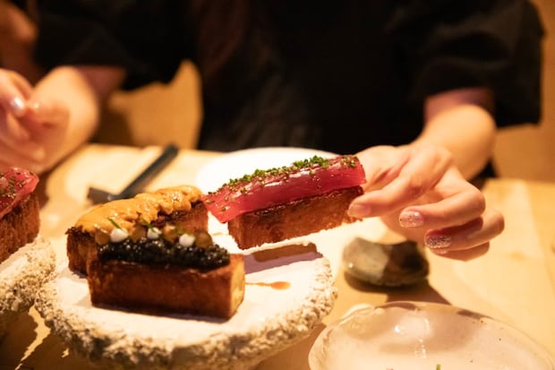 理央さんが言っていたブリオッシュは、コースとはまた別の追加オーダー。ウニ、マグロ、キャビアの3種類を乗せたブリオッシュ($100!)は、バターの香りがぶわーっと口いっぱいに広がって、そこに調和した主役の3種類がこれまた最高! お会計をしてお店を出たあと、すぐに「わ~もうあのブリオッシュが食べたくなっちゃった……」と、スタッフ全員が、あの味をもう一度! 状態になりました。超人気店のため、ハワイ渡航が決まったらすぐの予約が必須です。