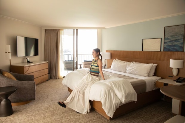 2つ目は、ワイキキビーチの中央に建つ、「本」のような外観が特徴的な【シェラトン ワイキキ ビーチ リゾート】。ここで感動したのは日本語ができるスタッフが多いこと、多いこと。日本人向けのサービスも充実していて、言葉に不安がある人も安心して滞在できるんです。