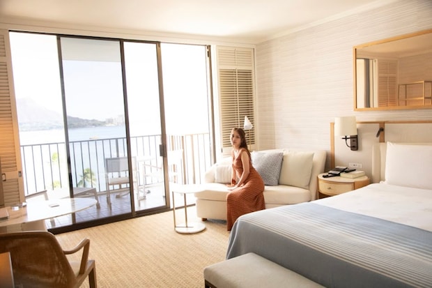 そして最後は“天国にふさわしい館”という意味を持つ、1917年創業の超老舗ホテル【ハレクラニ】。ここに宿泊できることを知った理央さんが大興奮するくらい、ミューズの憧れホテルでもあります。開業当時から変わらないデザインコンセプトの客室は、主張し過ぎない、心が落ち着く白が基調。