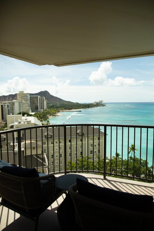 ずっとここにいてもいいくらい、贅沢な絶景を独り占め。ラナイに出れば、どうですかこのオーシャンビュー! 目の前には透き通るほどのブルーが広がり、先にはダイヤモンドヘッドまでも一望できます