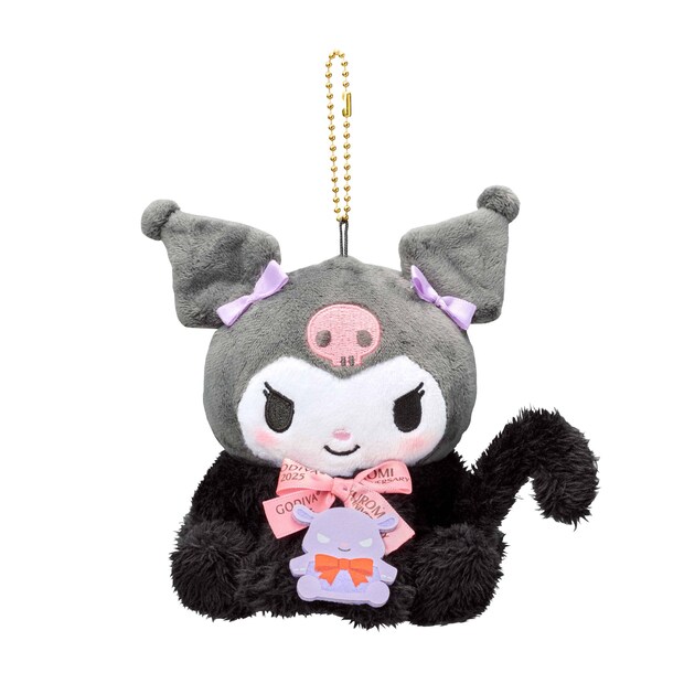 チェーンが付いており、バッグにぶらさげて一緒にお出かけできるのが魅力。クロミの黒ネコフードは取り外し可能なので、気分やコーデに合わせて楽しめるのも利点ですよ。
