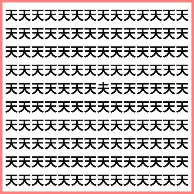 たくさんの「天」の中に、1文字だけ違う漢字が混ざっています。