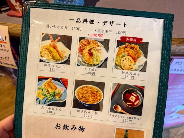 さらに、レストランでも提供されている一品メニューを追加で注文できるので、天ぷらを追加。