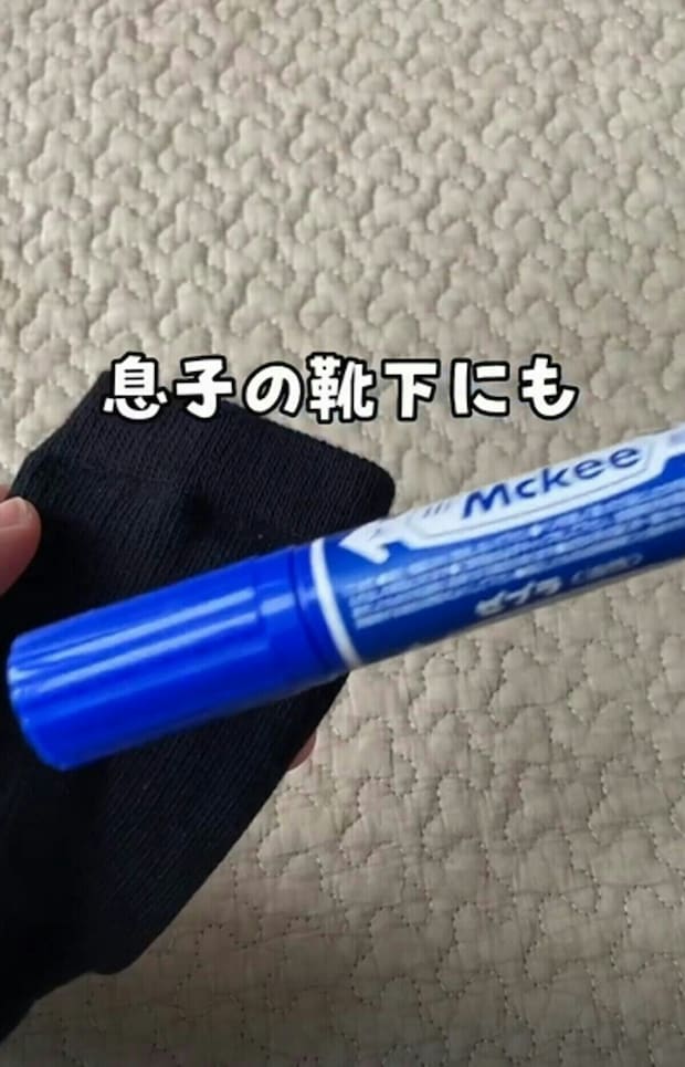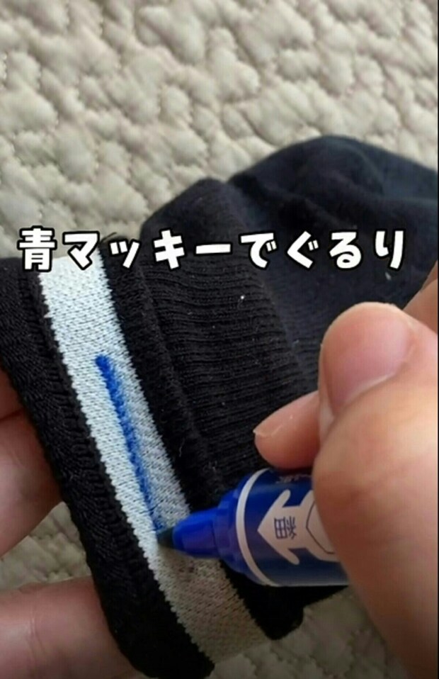 家族の靴下を見分けるため、別の色の油性ペンを用意します。