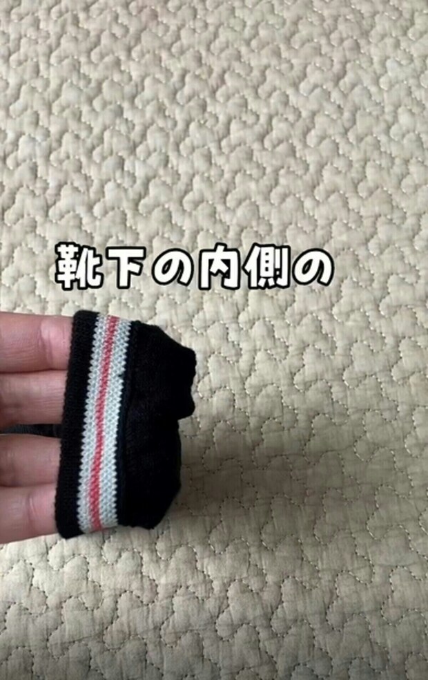 靴下の内側の部分が見える状態にします。