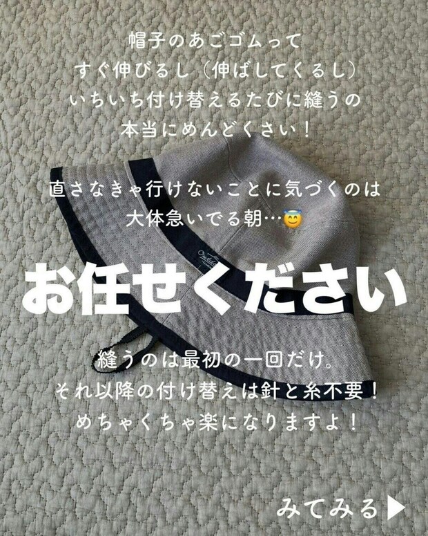 縫うのは最初の1回だけ!【ライフハック】帽子ゴムの付け替えが楽になるワザ