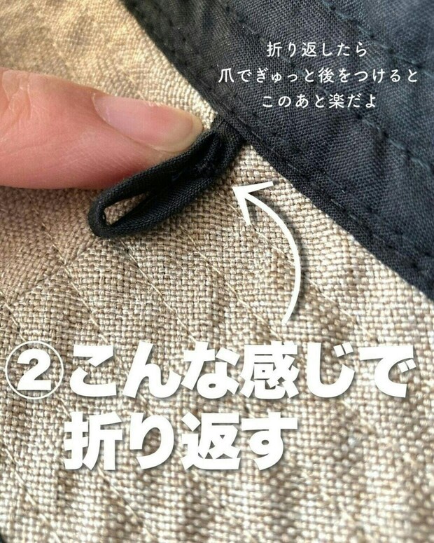 折り返した部分を、輪になるように縫い付けます。