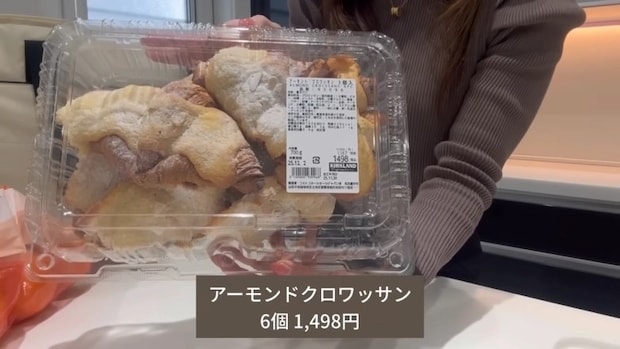 表面のアーモンドフィリングがメロンパンの皮のように甘く、クロワッサン生地のサクサク感と相性抜群です!軽くトースターでリベイクすると、まるでできたてのように変身するそう♪