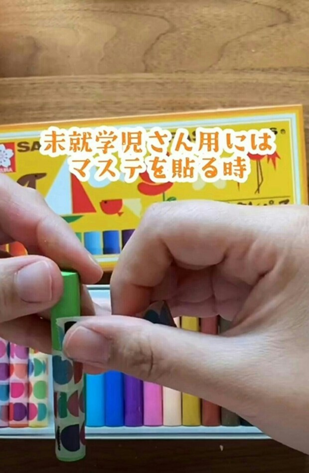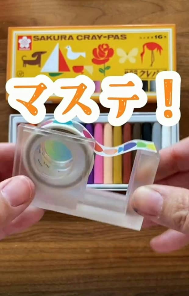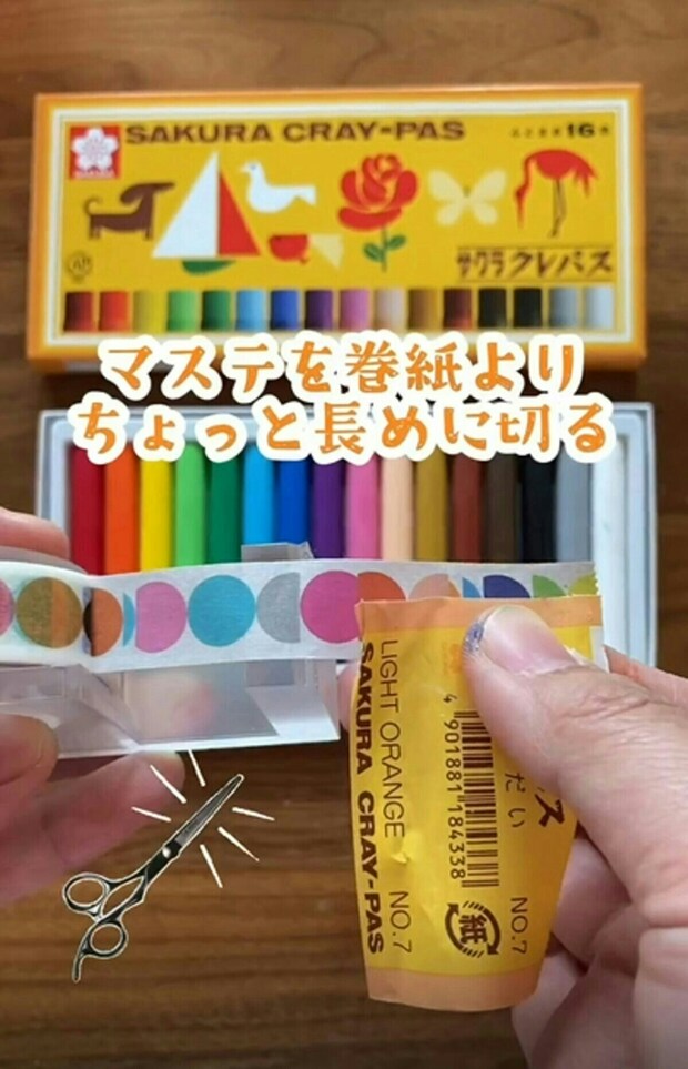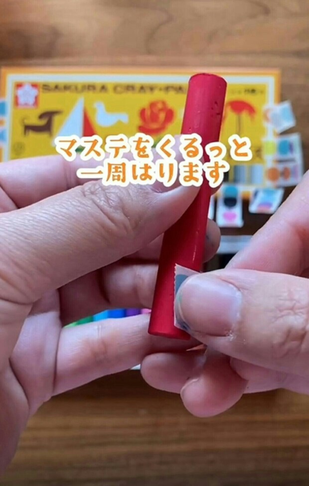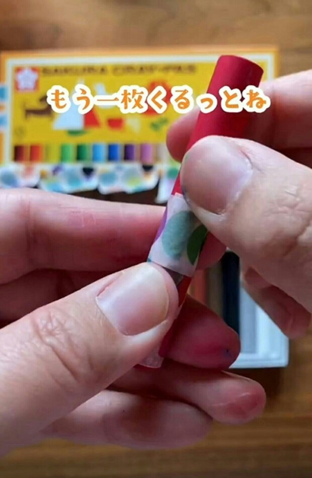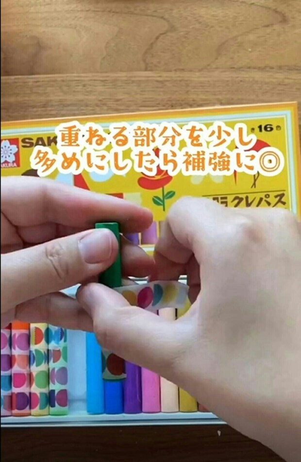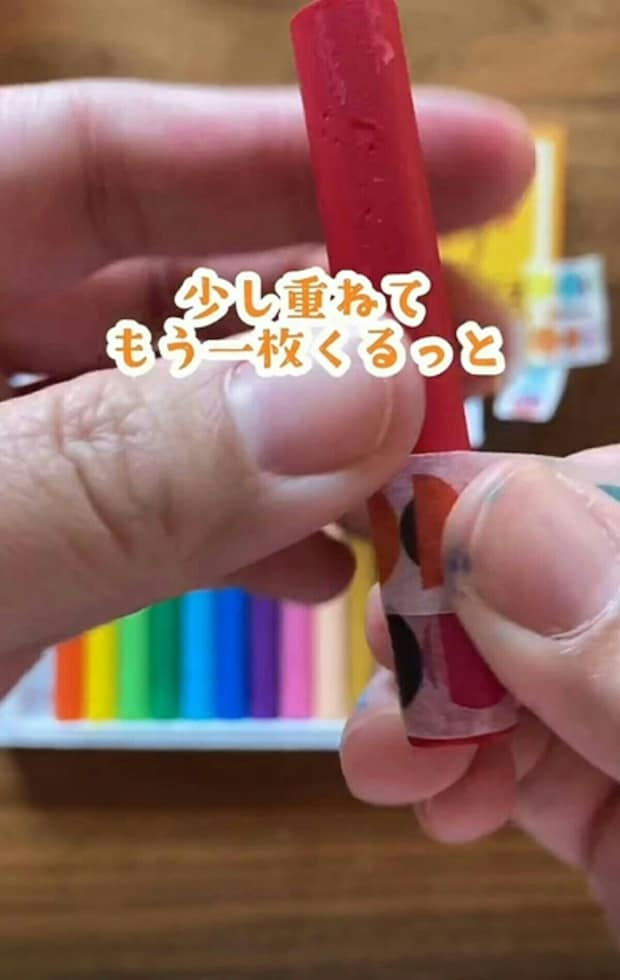 クレヨンが短くなったら、一番上のマスキングテープを剝がすことで、持ちやすくなります。