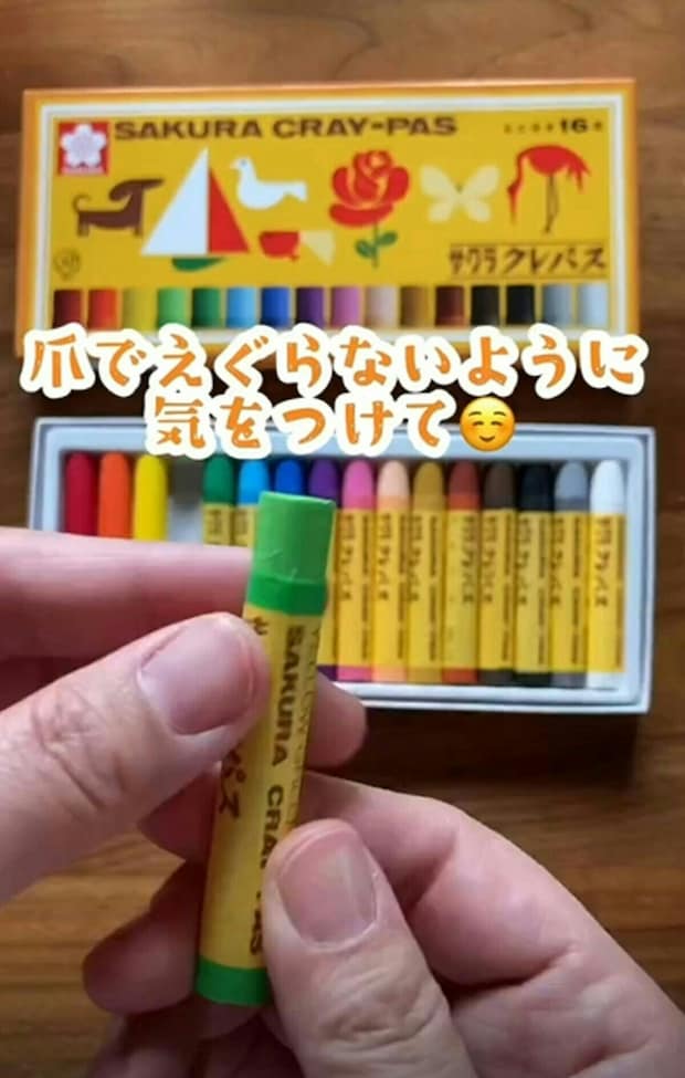 このとき、爪でクレヨンをえぐってしまわないように気をつけましょう。