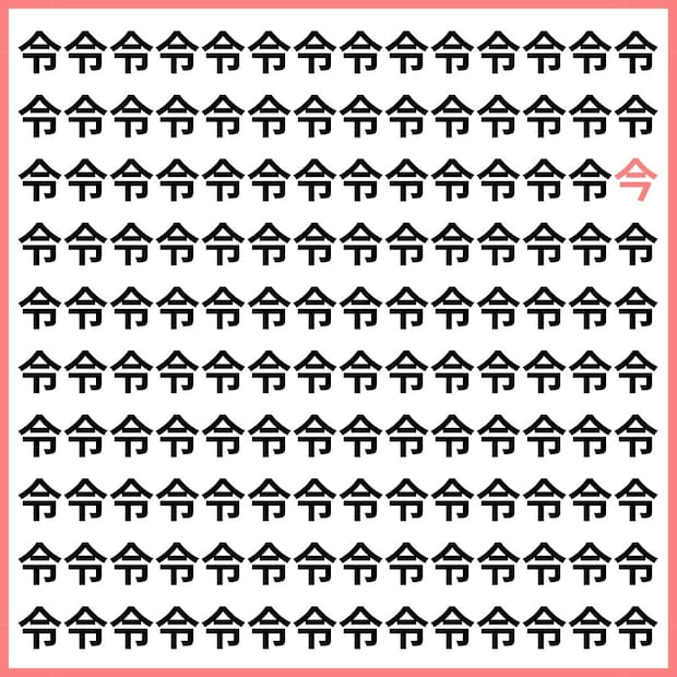 たくさんの「令」の中に、1文字だけ違う漢字が混ざっています。