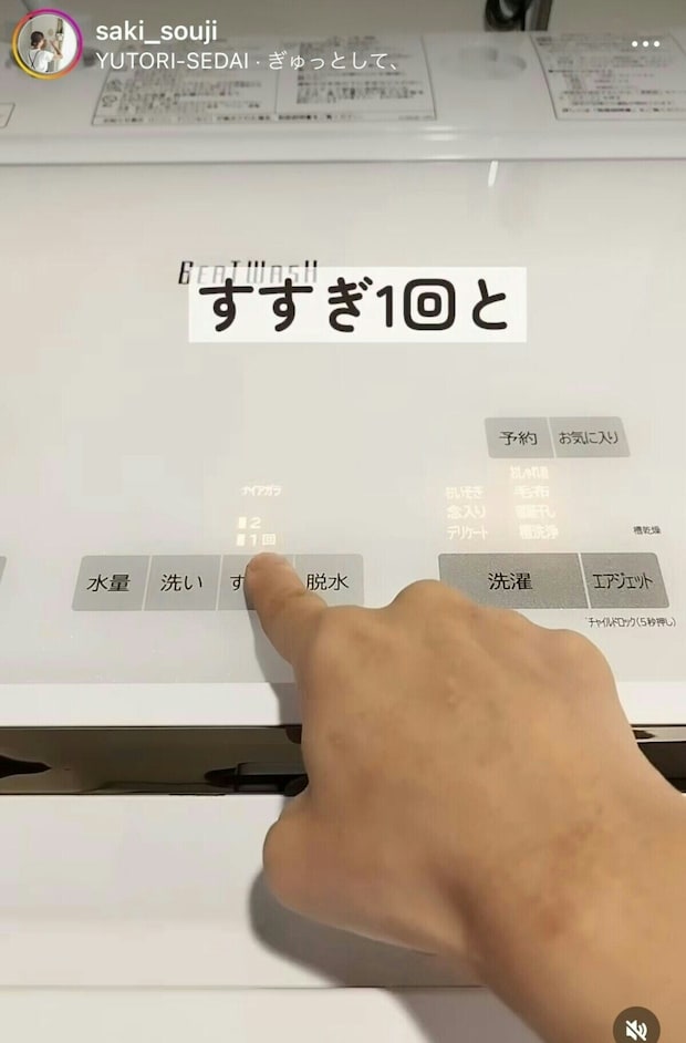 「すすぎ1回」と「脱水」を選んで、洗濯機を回すだけ!