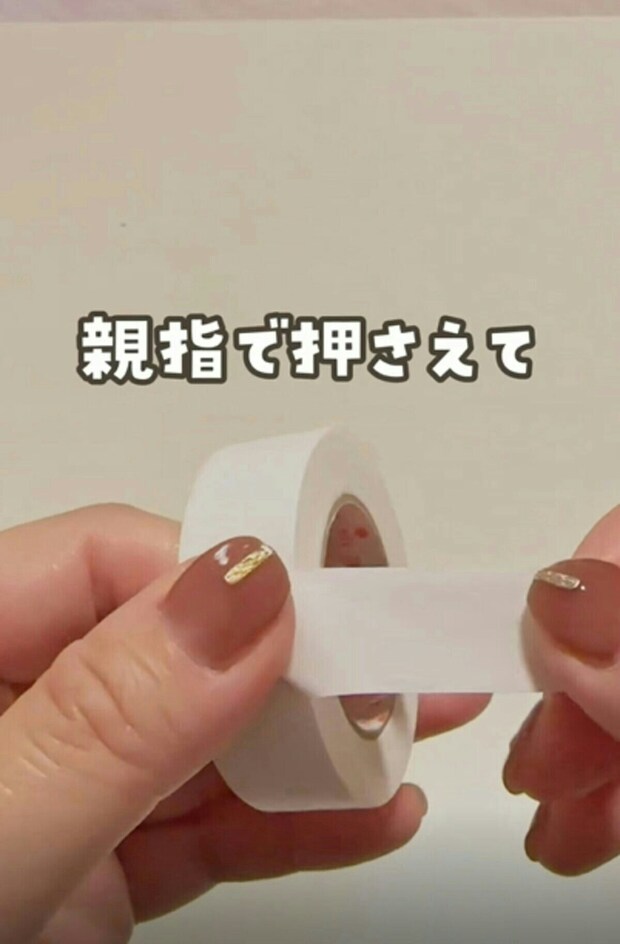 マスキングテープを切るときと同じように、折った部分を親指で押さえ、力強く引っ張ります。
