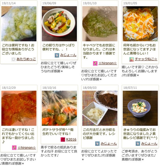 「簡単で完璧に水切り出来ました」「これは本当助かります」「破れないのが嬉しい」など、つくれぽ(作りましたフォトレポートのこと)でも喜ばれています。