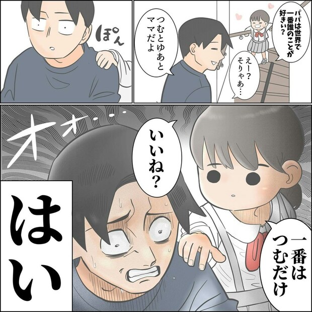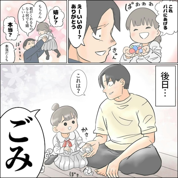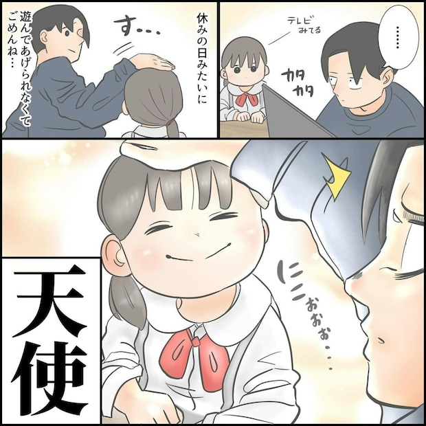 どんなに疲れていても、娘に「ありがとう」と言われればうれしいもの。娘がこんなことを言ってくれるなんて、ゆーぱぱさんが幸せなのがとても伝わってきます。そして、そんな娘の予想外のひとことに、思わず「かわいすぎる!」と言いたくなりますよね。