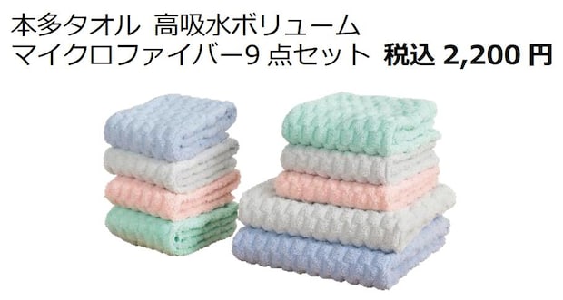 ・本多タオル 高吸水ボリューム マイクロファイバー9 点セット:各2,200円(税込)