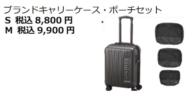 ・ブランドキャリーケース・ポーチセット:S 8,800円/M 9,900円(税込)