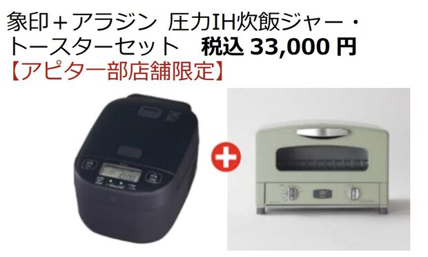 ・象印+アラジン 圧力IH炊飯ジャー・トースターセット:33,000円(税込)