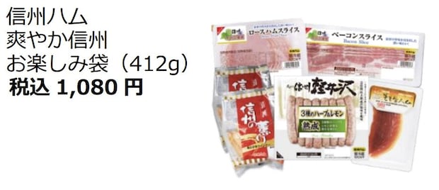 ・信州ハム 爽やか信州 お楽しみ袋(412g):1,080 円(税込)
