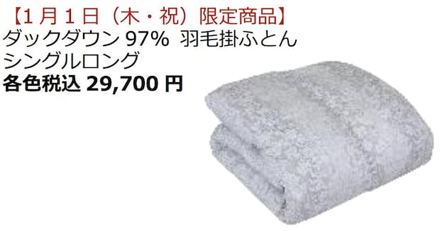 ・1/1 限定: ダックダウン97% 羽毛掛ふとん(29,700円 税込)