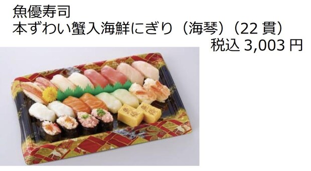 ・魚優寿司 本ずわい蟹入海鮮にぎり(22貫):3,003円(税込)
