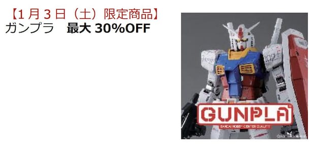 オンラインショップでも元旦から日替わり奉仕品として羽毛布団やガンプラなどが販売されます。