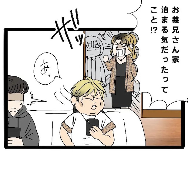 「お義兄さん家に泊まる気だったってこと!?」と言いながらサチさんがリビングに入ると、「あっ」と言って気まずそうな顔で信也君が振り返りました。