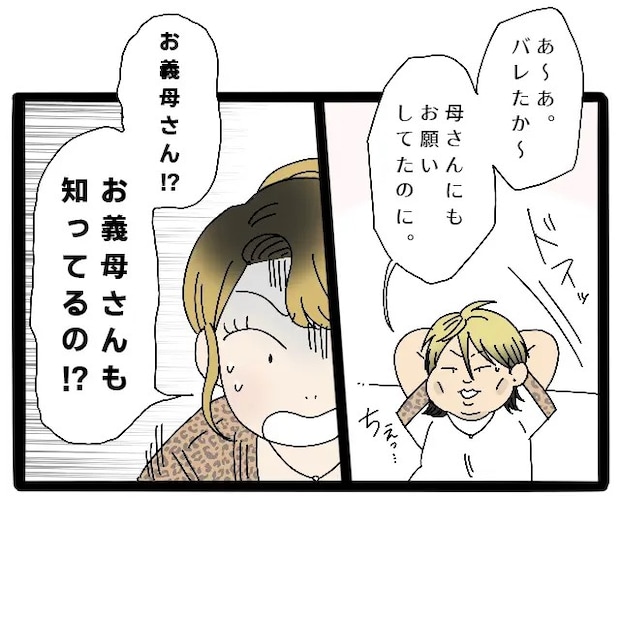 信也君はドスッとソファに腰を下ろすと、「あ~あ。バレたか~。母さんにもお願いしてたのに」とがっかりした様子で言いました。それを聞いたサチさんは「お義母さん!?お義母さんも知ってるの!?」と青ざめました。