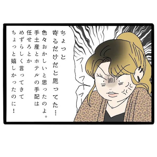 「ちょっと寄るだけだと思ってた・・。色々おかしいと思ったのよ。手土産とホテルの手配は任せろとか、めずらしく言ってきてちょっと嬉しかったのに!」と今にも怒りが爆発しそうなサチさん。ここで初めてサチさんが何も知らずに来ていたことを察した私。