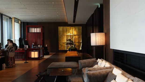 チェックインロビー。奥になにやら黄金に煌めく金箔が……?