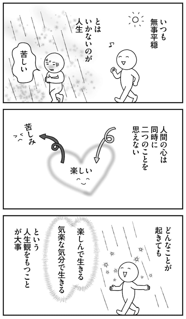 楽しんで生きる、ともあれ気楽な気分で生きられる人生観をもつことです。人生、千年も万年も生きられないのです。