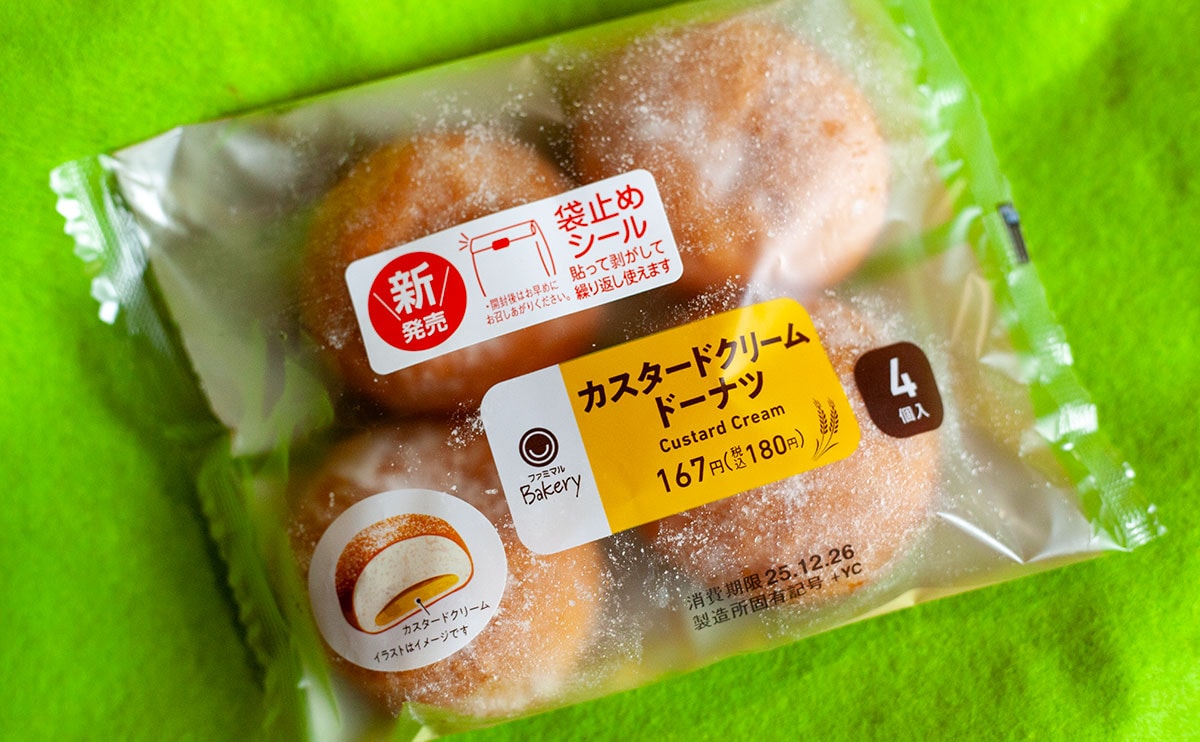 2025年12月23日(火)、ファミリーマートが発売したのが、「カスタードクリームドーナツ4個入」(税込180円)という新商品。