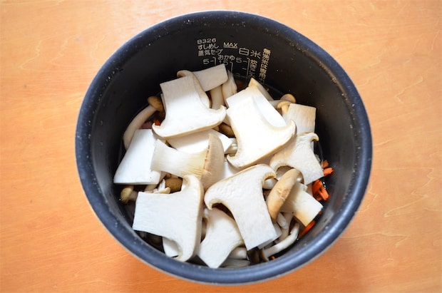 3. 2の上に1の具材を全部のせて、通常通りに炊く。