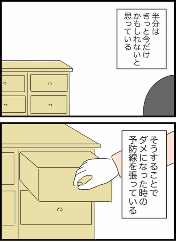 もし再び夫が前のように戻ったとき、自分が再度深く傷つかないように予防線を張っているというようこ。自分の心を壊してしまってはどうしようもないですもんね。