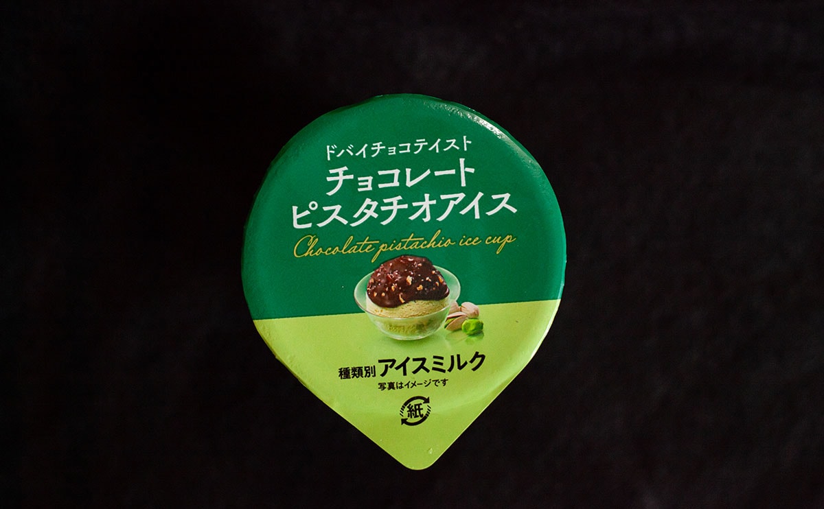 パッケージに「ドバイチョコテイスト」と書いてありますが、もちろんメインはピスタチオアイス。天面にはチョコレートコーチングとワッフルクランチがトッピングされているのだとか。チョコレートコーチングとワッフルクランチで、ドバイチョコ特有のサクサク感を表現したようですね。