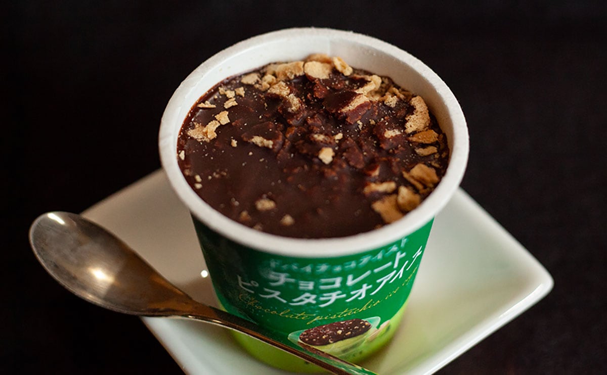 一方、下に隠れたピスタチオアイスは、ふわっと軽やか。ピスタチオの風味をしっかり感じるものの、意外とあっさりもしているから、濃厚チョコとのバランスがよく取れています。また、ワッフルクランチとピスタチオならではの香ばしさもよいアクセントになっていて、甘みはあるけどパクパクいけちゃうアイスでした!
