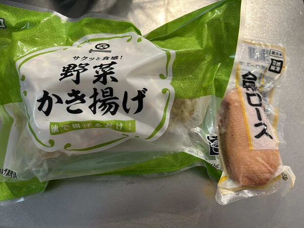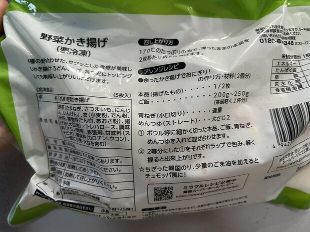 こちらはたまねぎ、さつまいも、にんじん、いんげんが入った冷凍の「野菜かき揚げ」。