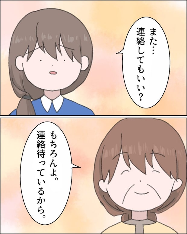その後、「また・・連絡してもいい?」お母さんにそう言うと、「もちろんよ。連絡待っているから」とお母さんが笑顔で答えてくれました。