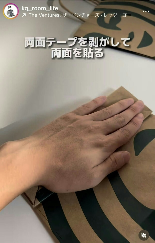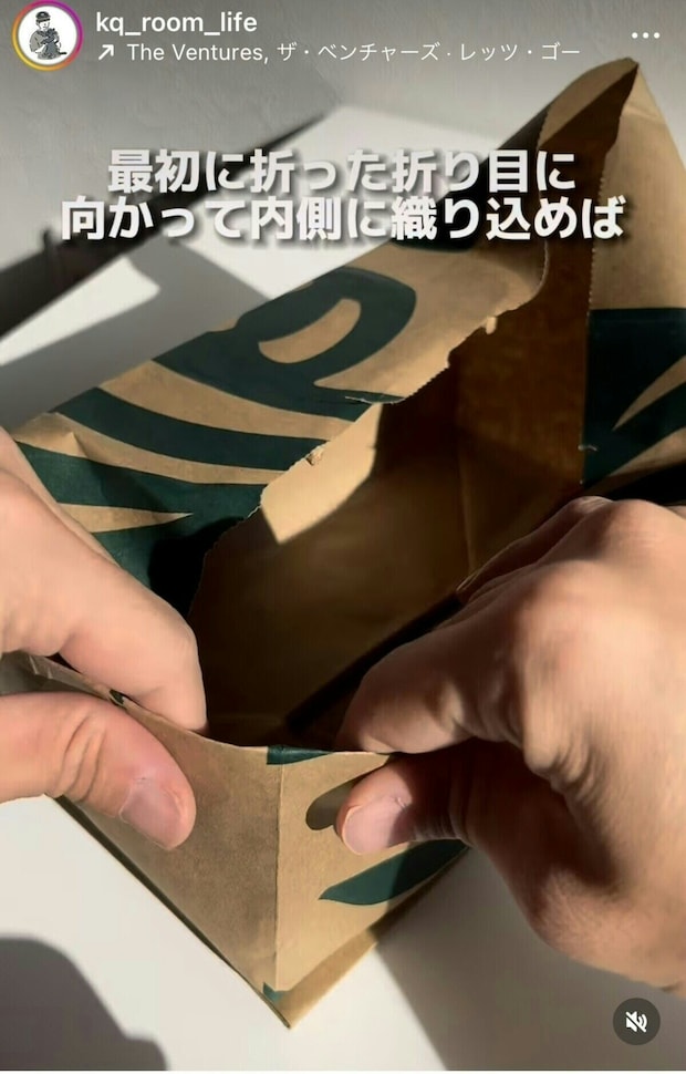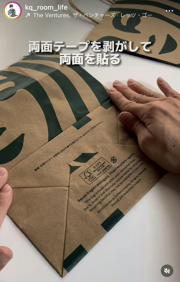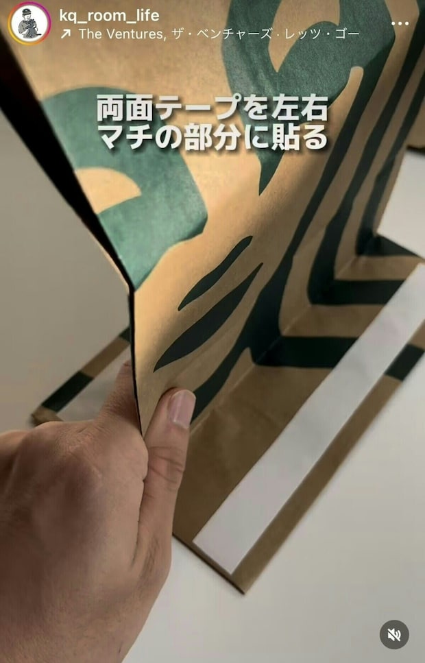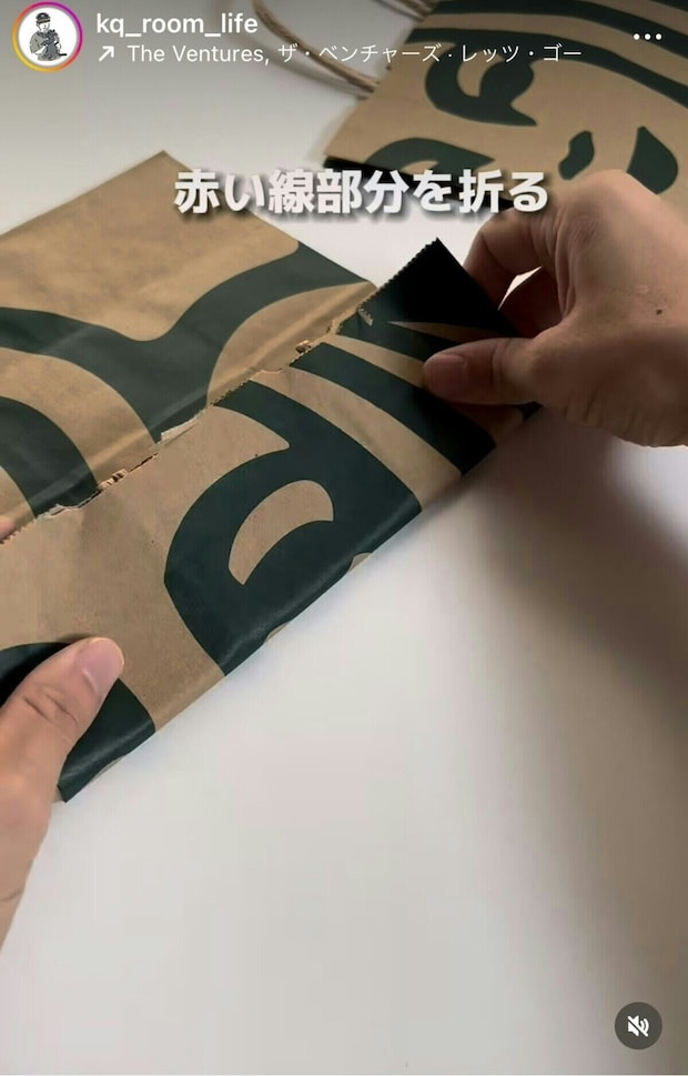 SNSで日々の生活に役立つ裏技を発信している、けんきゅ_30秒で分かる暮らしのアイディアさんの裏技を使って、お気に入りの紙袋を今すぐ使える形に変身させましょう。