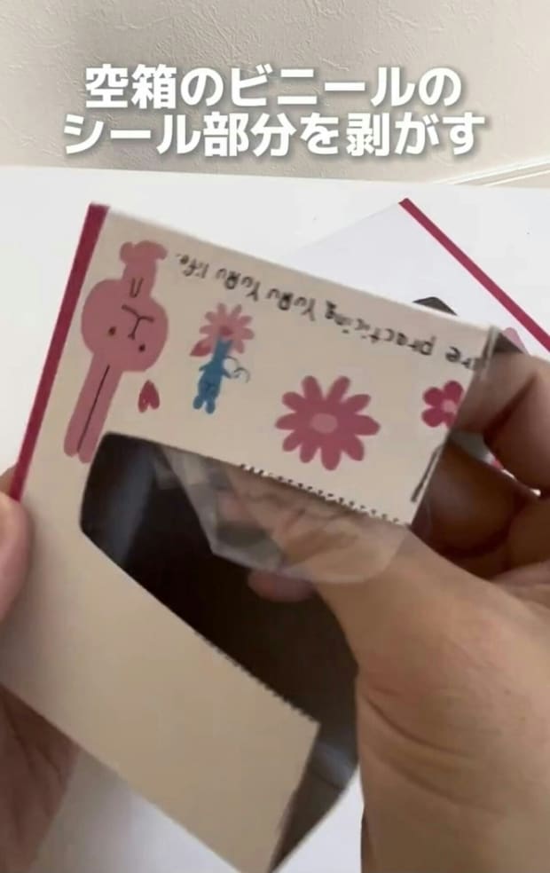 空き箱のビニールをはがす