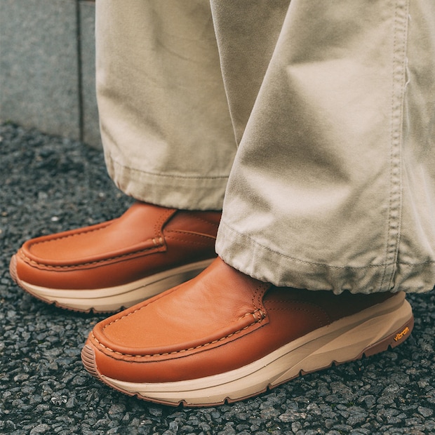 レザーに『ビブラム』のソールとハイブリットな『トモアンドシーオー』のシューズ。機能性とデザイン性を兼ね備えた一足。