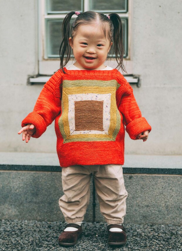 主役は『ミーシャ アンド パフ』のカラフルなブロックニット。ベロアのバレエシューズでおめかし感もプラスして、街へお出かけできるキッズコーデの完成!