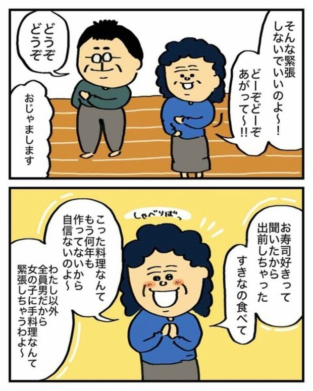 息子が彼女を連れてきたことが嬉しくて、テンションが上がりっぱなしのシゲオさんの母。