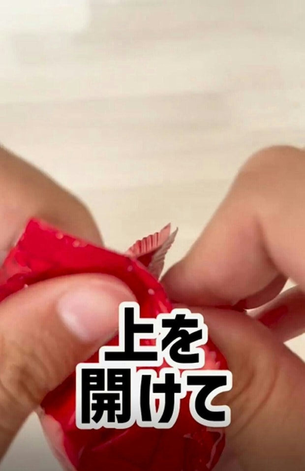 しかし、ギュッと固く絞られた包装により、開封することが困難なことも。