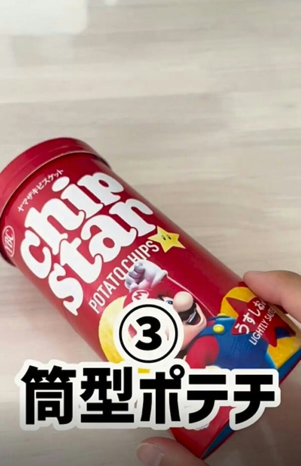 袋入りのポテトチップスと比べて、散らばる心配も少なくて持ち運びもスムーズな「筒型ポテトチップス」。