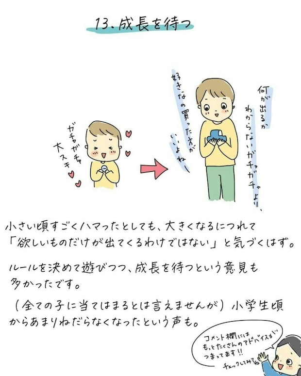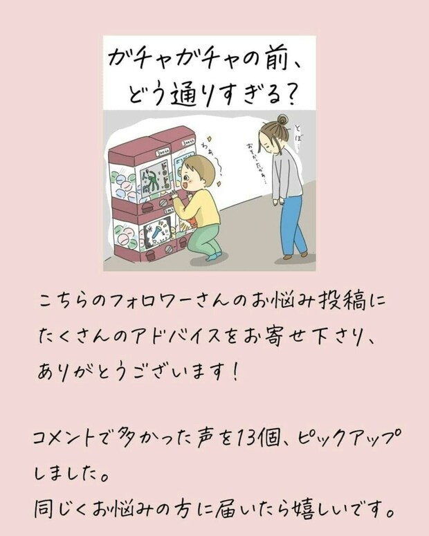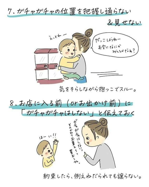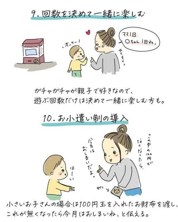 子どもに、出掛ける前やお店に入る前に「今日はガチャガチャをしない」という話をして約束をしてから行動するとの声も。